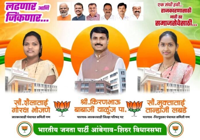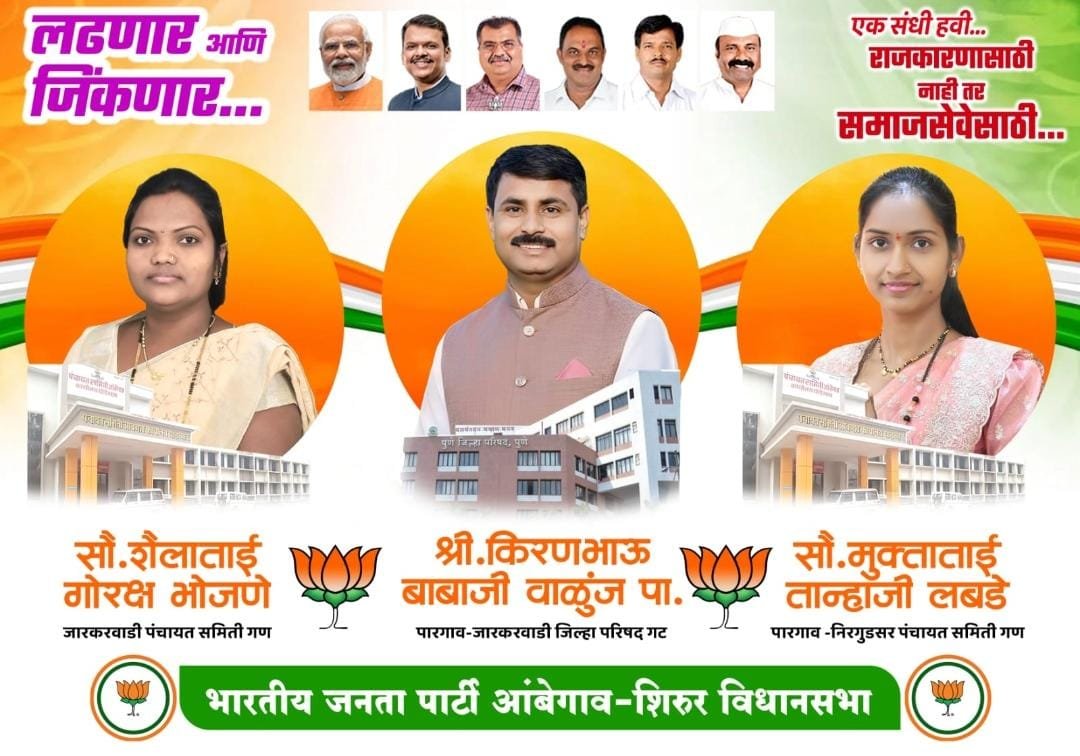 आगमी काळात पार पडत असलेल्या जिल्हा परिषद, पंचायत समितीच्या इच्छुक उमेदवारांनी निवडणुकीची तयारी केली आहे वळसे पाटलांच निरगुडसर गाव पारगाव जारकरवाडी जिल्हा परिषद गटात येत आहे या जिल्हा परिषद गटात जिल्हा परिषद व पंचायत समिती भारतीय जनता पक्ष स्वबळावर निवडणूक लढवणार असल्याचे आंबेगाव तालुका भारतीय जनता पार्टीचे आंबेगाव पूर्व मंडलचे अध्यक्ष किरण बाबाजी वाळुंज यांनी संघर्षनामाशी बोलताना सांगितले