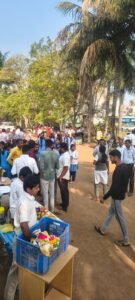 विद्यार्थिनींकडून विविध प्रकारचे फळे पालेभाज्या फळभाज्या संतुलित आहार तसेच विविध प्रकारचे खाद्यपदार्थ विक्रीस ठेवले गेले होते.