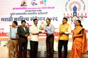 येथे राज्यस्तरीय शासकीय मराठी साहित्य संमेलन – २०२६ संपन्न झालेल्या साहित्य संमेलनात मान्यवरांच्या हस्ते ग्रंथ पुरस्कार देवून सन्मानित करण्यात आले.